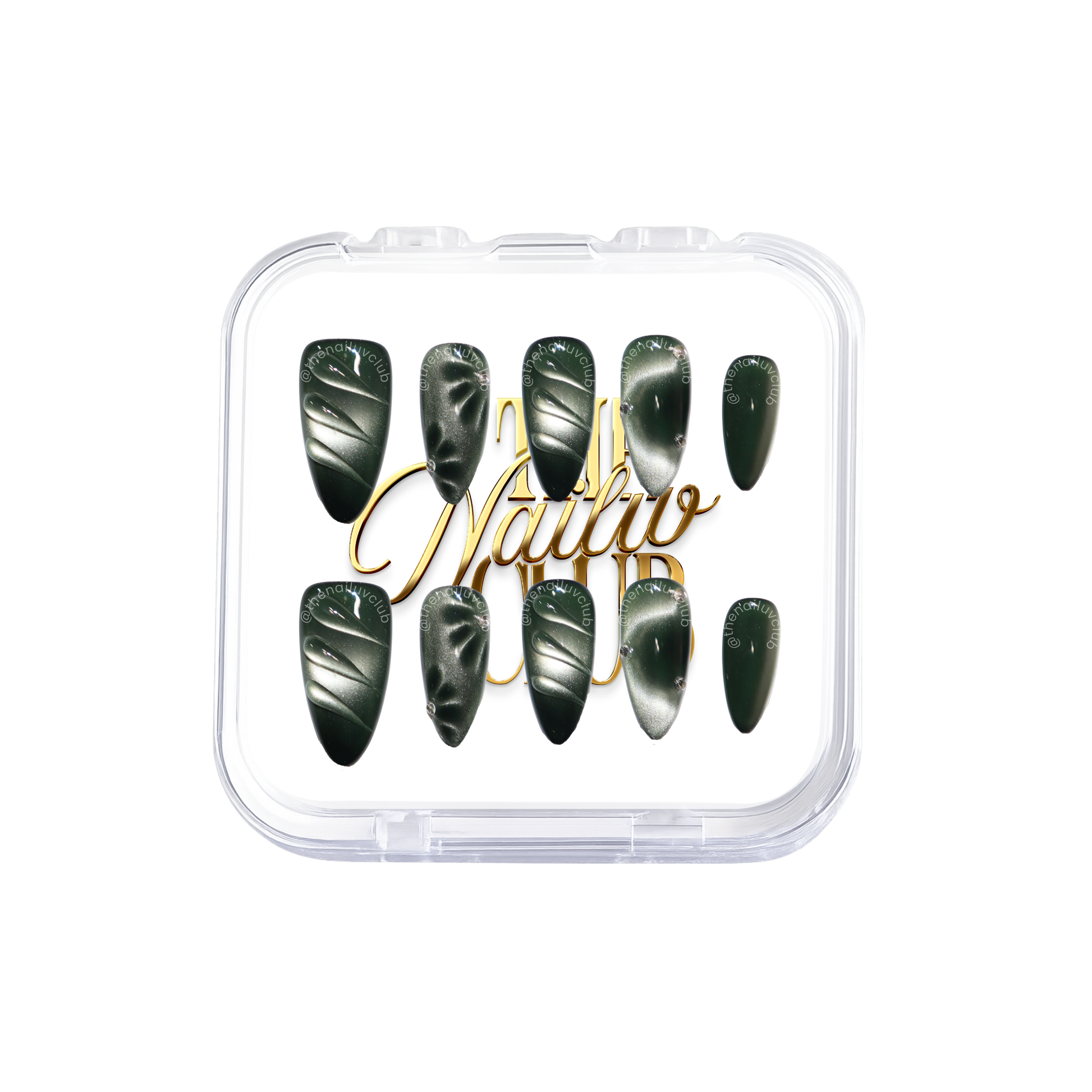 Un diseño elegante en tonos verde oscuro con ondas brillantes y acabado perlado. Inspirado en el movimiento del agua, transmite calma, lujo y fuerza.
