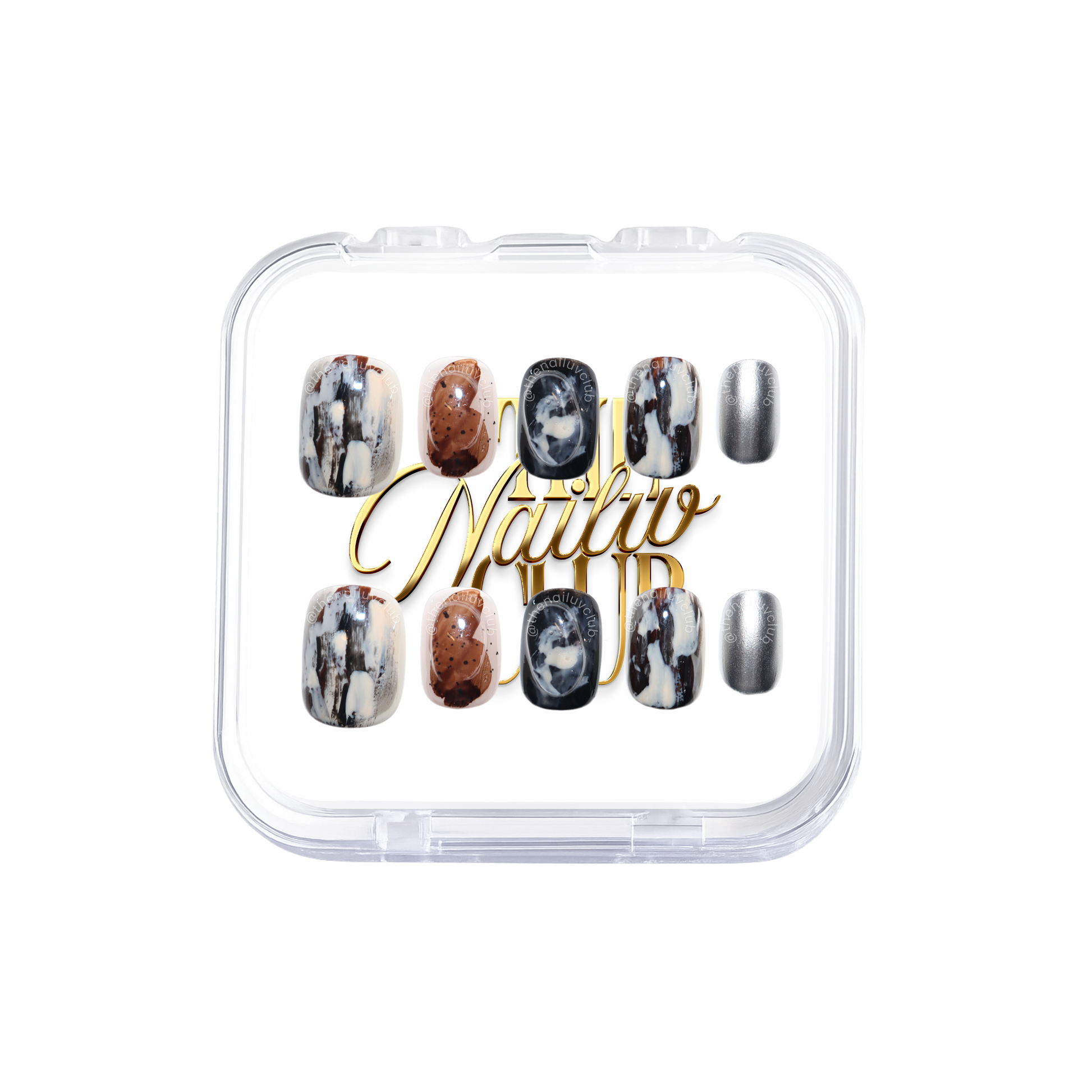 Una mezcla artística de tonos milky, negro, gris y café con efectos marmoleados que evocan piedra natural. Frosted Marble es moderno, sofisticado y versátil, perfecto para quienes buscan un diseño neutro pero lleno de textura y carácter.